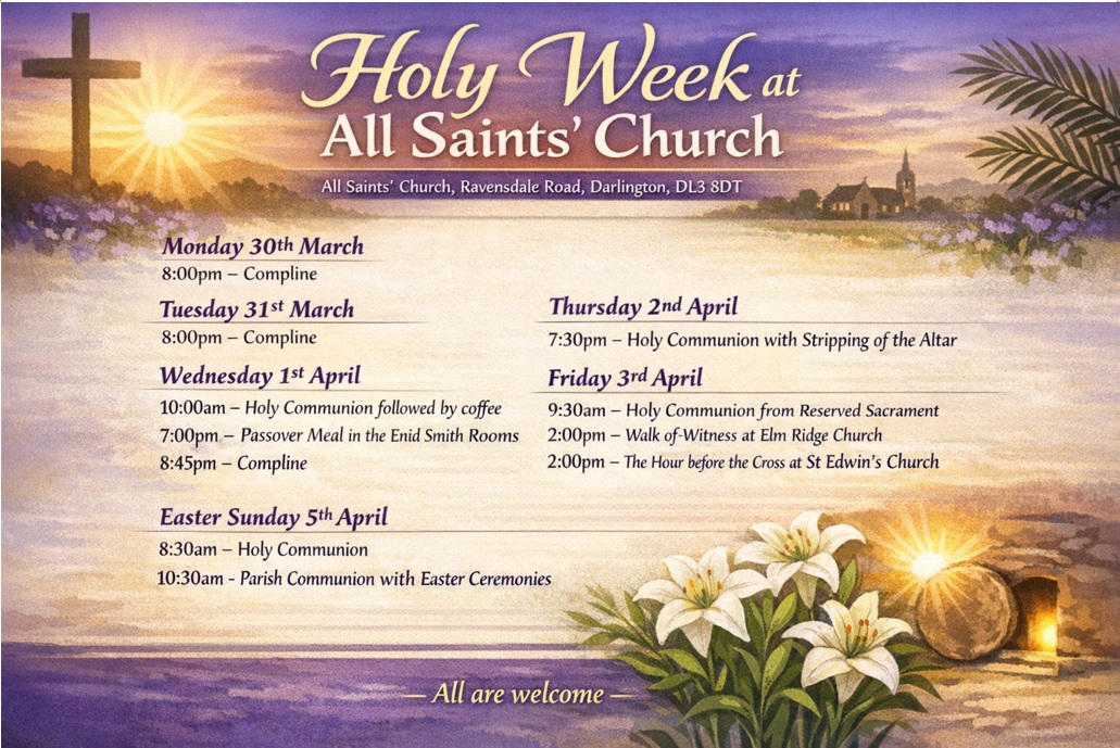 For further details: Please telephone 01325 469891 or email office@allsaintsblackwell.org.uk